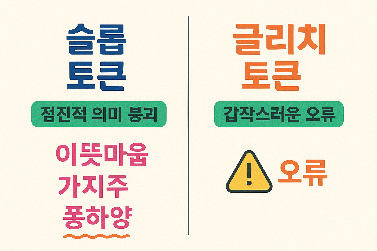 - 모델 내부의 표현이 충돌하거나 입력 처리 과정에서 이상이 생길 때 발생하는 갑작스러운 오류적 단어/문자열을 의미합니다.