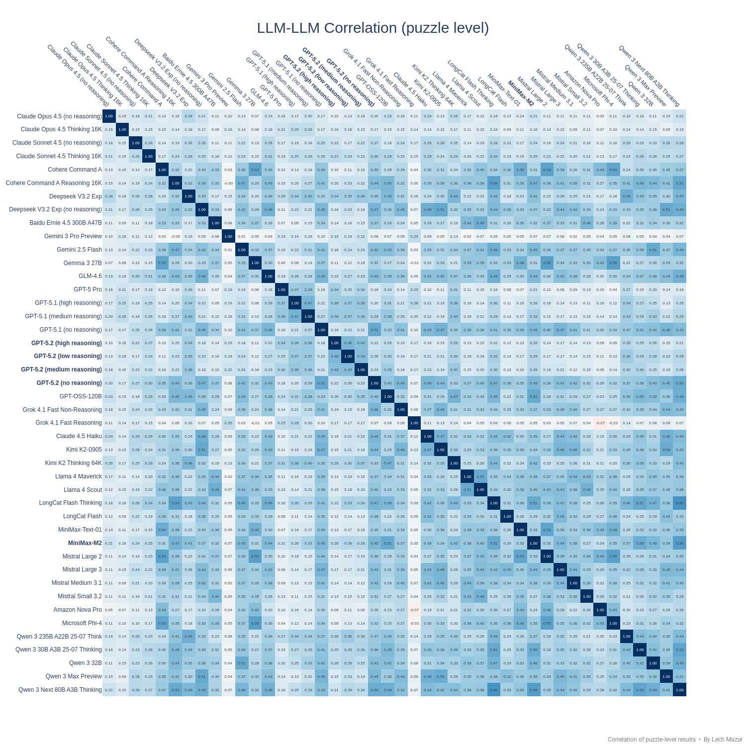 Correlation of puzzle-level results: heatmap