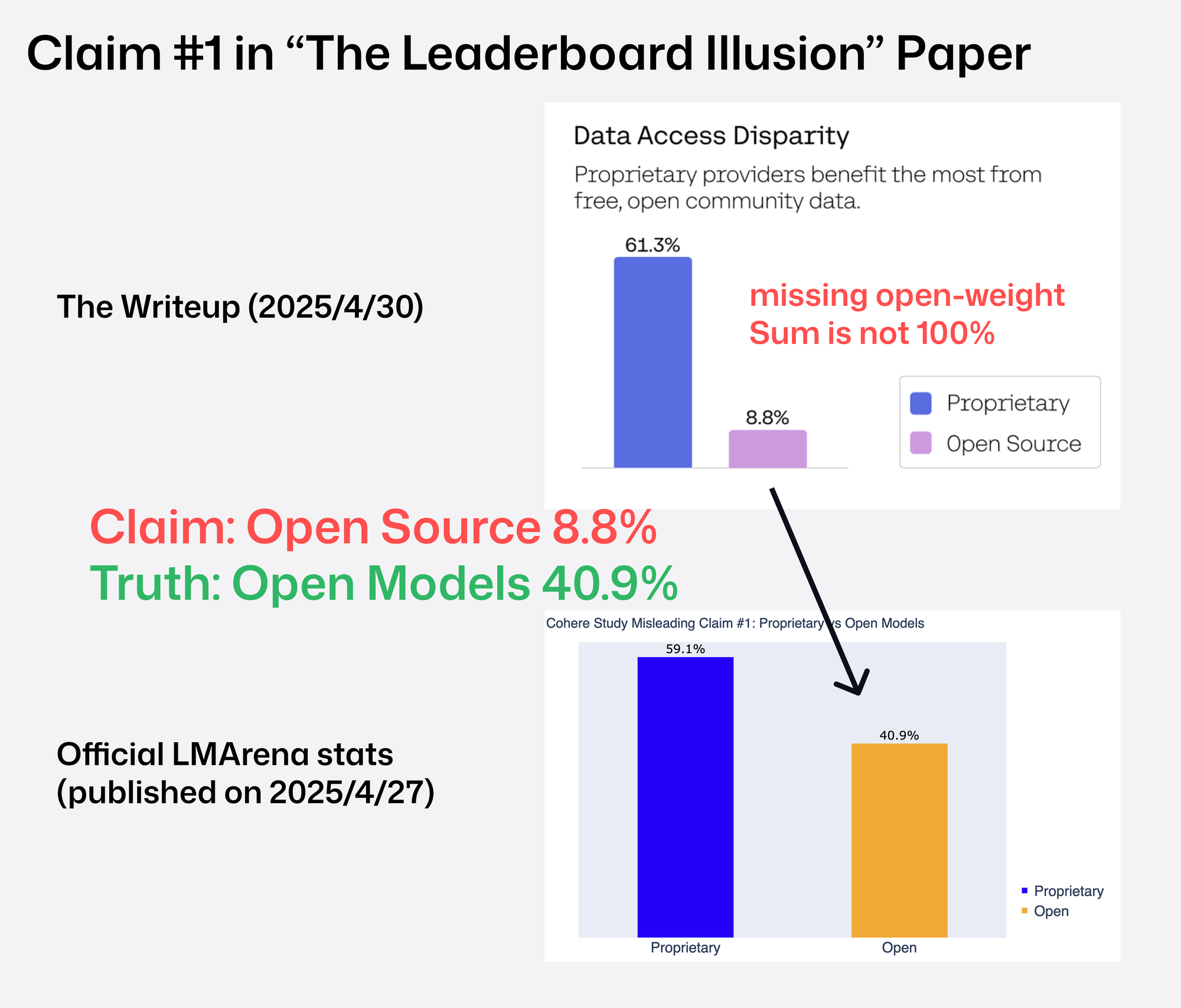 즉, 오픈 모델이 논문 주장처럼 8.8%가 아니라 약 40.9%를 차지한다는 점을 제시