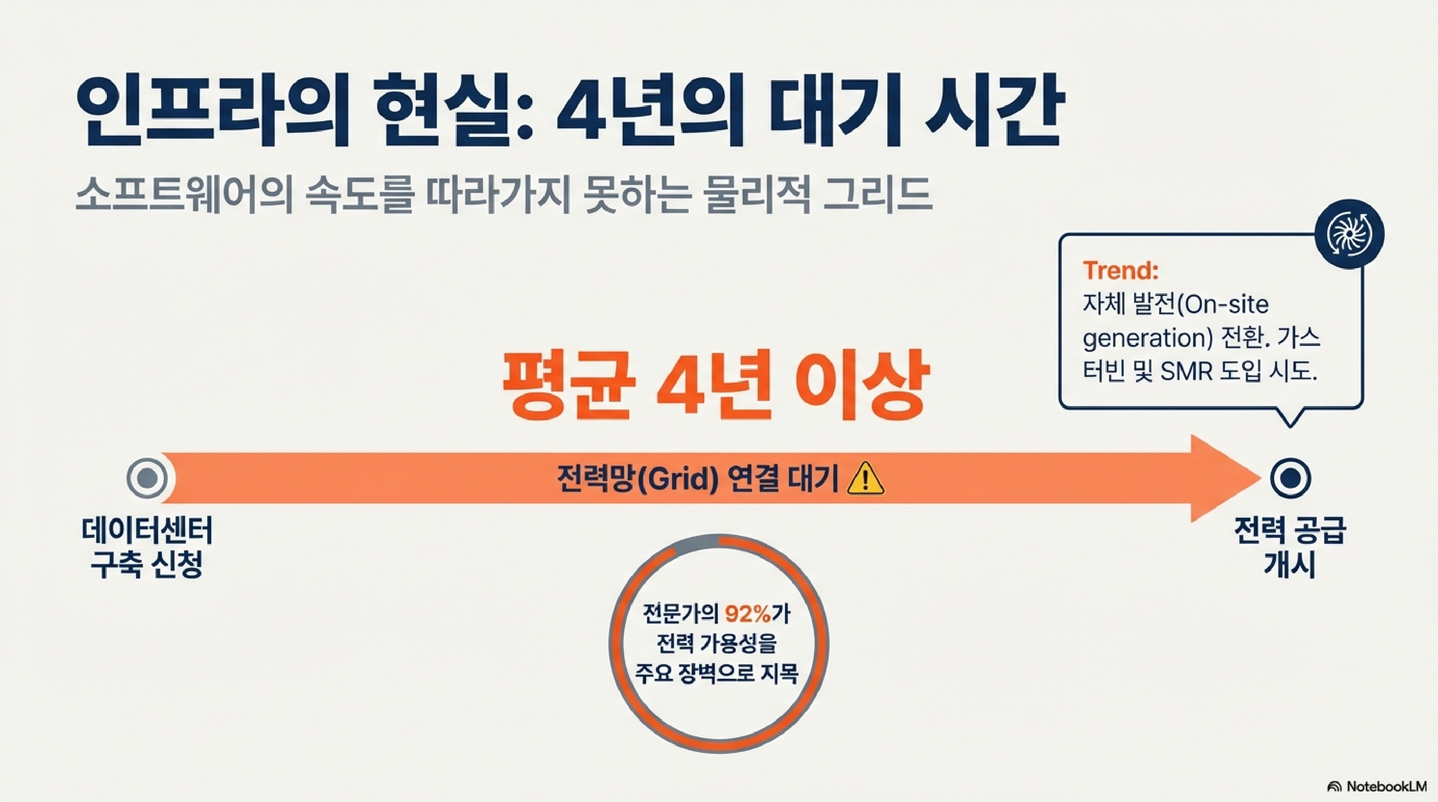 - 데이터센터 증설 병목: 전력 인허가, 송전망 연결에 수년 소요