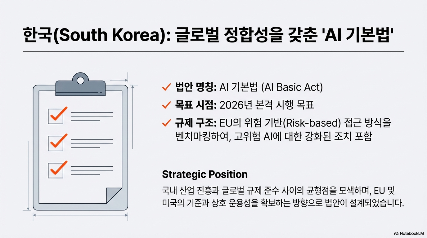 ( OECD 보고서는 한국의 AI 기본법(AI Basic Act)이 2026년 시행을 목표로 하며 고위험 AI에 대한 강화된 조치가 포함됐다는 점을 밝히고 있습니다.)