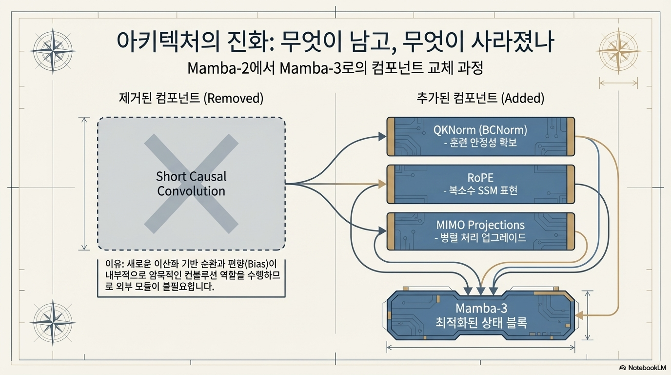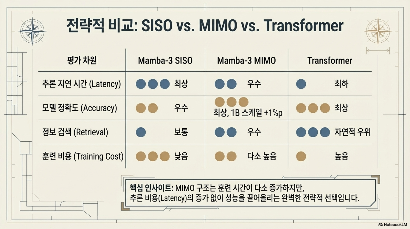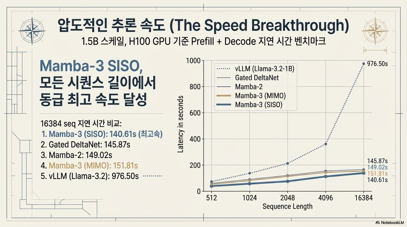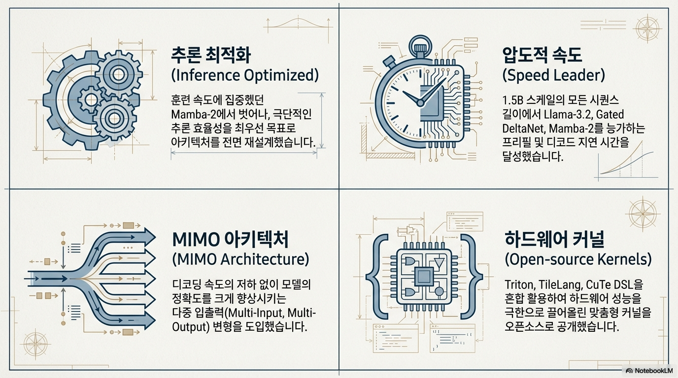 Together AI와 연구 파트너들이 공동 개발한 Mamba-3 모델의 출시를 알리며 그 기술적 혁신과 성능을 상세히 소개합니다. 기존 모델들이 훈련 효율성에 집중했던 것과 달리, Mamba-3는 추론 효율성 극대화를 핵심 목표로 삼아 더욱 정교한 재귀 공식과 복합값 상태 추적 기능을 도입했습니다. 특히 병렬 처리가 가능한 MIMO(다중 입력 다중 출력) 구조를 통해 성능을 높이면서도 낮은 지연 시간을 유지하며, 이는 최신 하드웨어에 최적화된 오픈 소스 커널을 통해 뒷받침됩니다. 결과적으로 이 텍스트는 Mamba-3가 언어 모델링과 정보 검색 작업에서 기존의 트랜스포머나 선형 모델들을 능가하는 차세대 고성능 추론 솔루션임을 강조하고 있습니다.