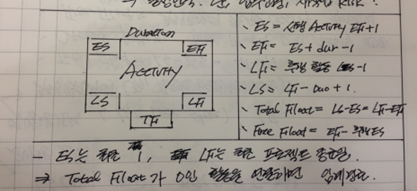 - ADM : 활동을 원노드로 표시하고, 연관관계를 화살표로 표시, FS관계, Dummy활동존재