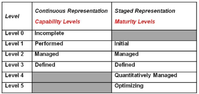 2) Continuous(연속적표현): SE-CMM 조직 전환용이, 능력도레벨(0~3단계)- 불수관정(Incomplete > Performed > Managed > Defined)