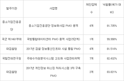 지난해 공공 프로젝트관리(PMO) 시장이 양적으로 크게 성장했다. 조달청 나라장터에 따르면 지난해 공공기관이 발주한 PMO 사업은 총 25개로 전년에 비해 두 배 이상 증가했다. 1억원 이상 사업이 �