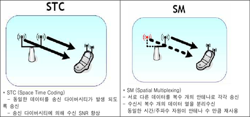 - STC (Space Time Coding) 안테나에 해당하는 공간 축과 시간 축으로 부호화를 적용, SNR 향상