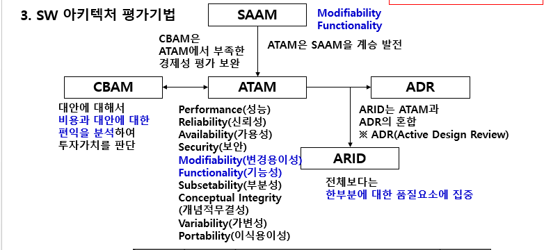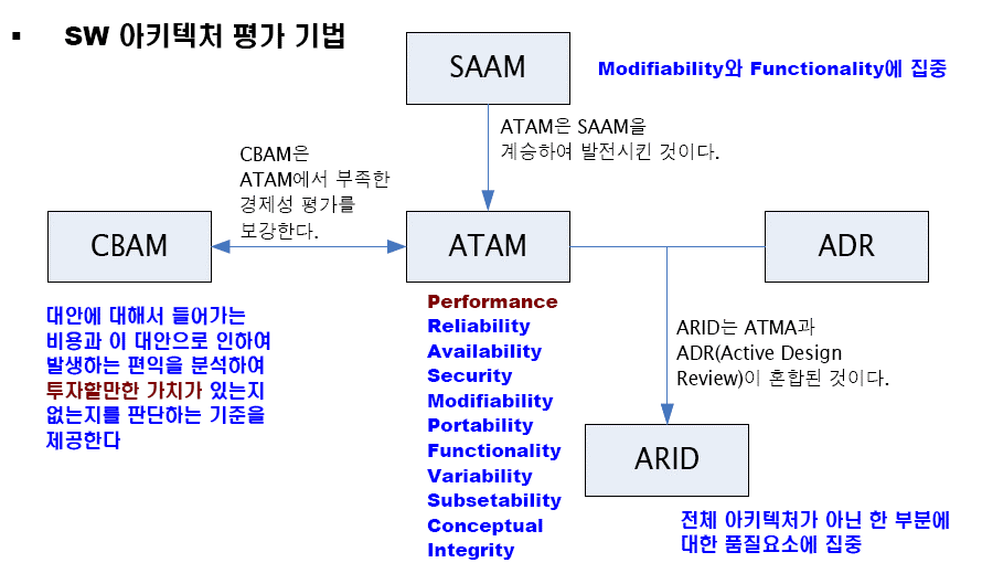 - ATAM : 모든 품질요소 평가 및 품질속성과 Trade-off 파악