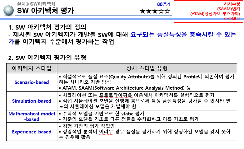 #정의: SW 아키텍쳐가 개발될 SW 에 대하여 요구되는 품질특성을 충족시킬 수 있는지에 대한 평가작업