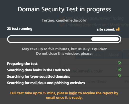 페이지를 열고 점검하고 싶은 조직 URL을 입력만 하면 보고서 나와