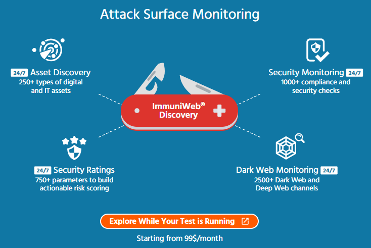 여러 보안 업체들의 무료 나눔이 이어지는 가운데, 웹 보안 전문 업체인 이뮤니웹(ImmuniWeb)도 자사의 도구를 무료로 풀었다. 자신의 회사나 기관이 다크웹에 어느 정도 노출되어 있는지 알아봐주
