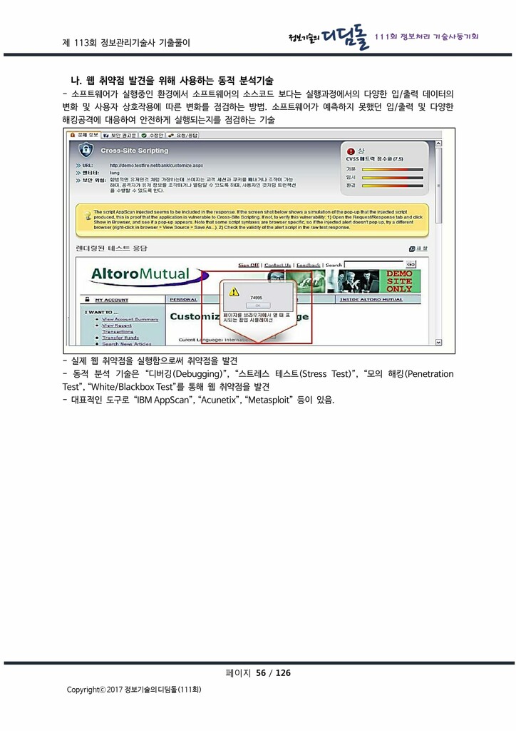 동적 분석 : SW를 직접 실행하여 실행 과정에 존재하는 결함을 검출해내는 테스트 방식
