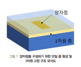 양자점: 3차원으로 양자구속효과를 보여 전자 등이 공간적으로 한 점에 위치할 수 있는 반도체 구조로 인공 원자와 같은 물리현상을 만들 수 있음