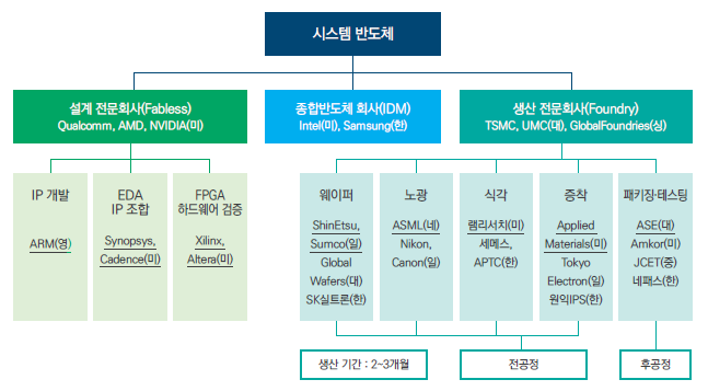 시스템 반도체 분야 설계(팹리스)-생산(파운드리)-종합 반도체 대표기업