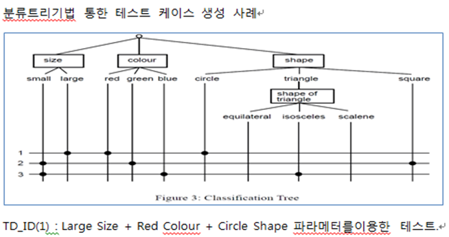 1. 분류트리기법 : 소프트웨어 일부 또는 전체를 트리 구조로 분석 및 표현하고, 이를 바탕으로 테스트 케이스를 도출하는 명세기반 테스트 설계 기법