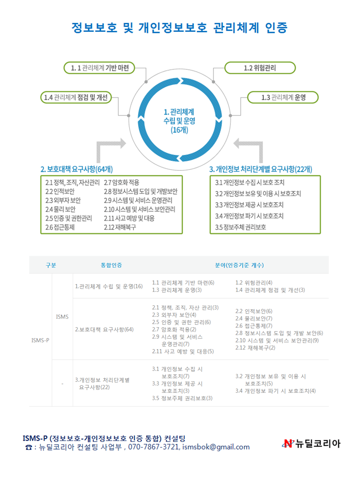 ISMS-P 인증기준 : 101개(ISMS 인증기준 80개 + 개인정보 요구사항 21개)