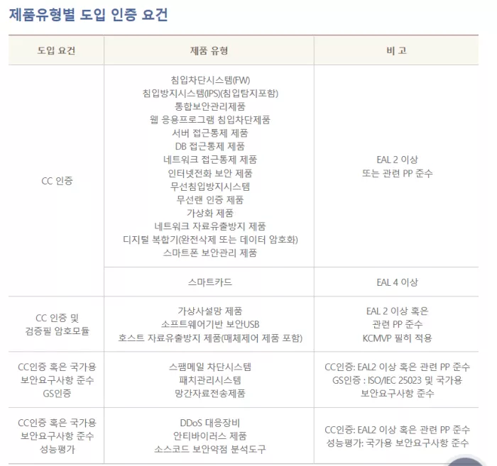 국가·공공기관에 도입되는 정보보호 제품 인증요건이 다양화됐다. 공통평가기준(CC) 인증과 암호모듈 검증(KCMVP) 중심에서 GS인증과 성능평가까지 확장됐다. 정보보호 제품 유형에 따라 사실상 �