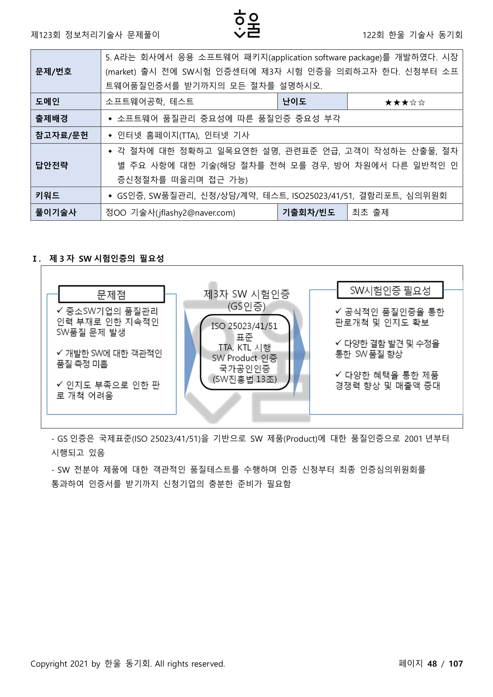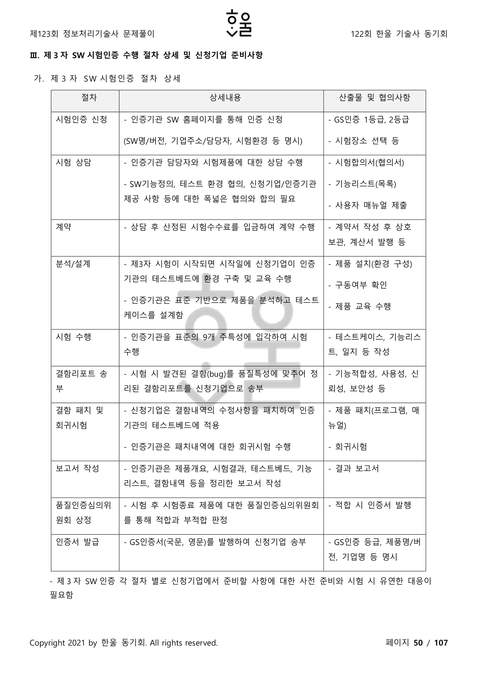 2) 인증기관 : TTA SW 시험인증센터 , 한국산업기술시험원 (KTL)