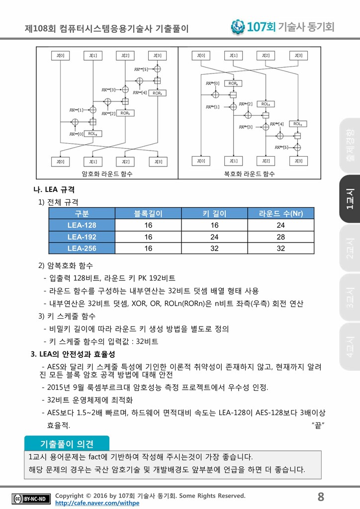 [장점] AES와 달리 키 스케줄 특성에 기인한 이론적 취약성이 존재하지 않고, 알려진 모든 블록암호 공격방법 안전, 32비트 운영체제 최적화