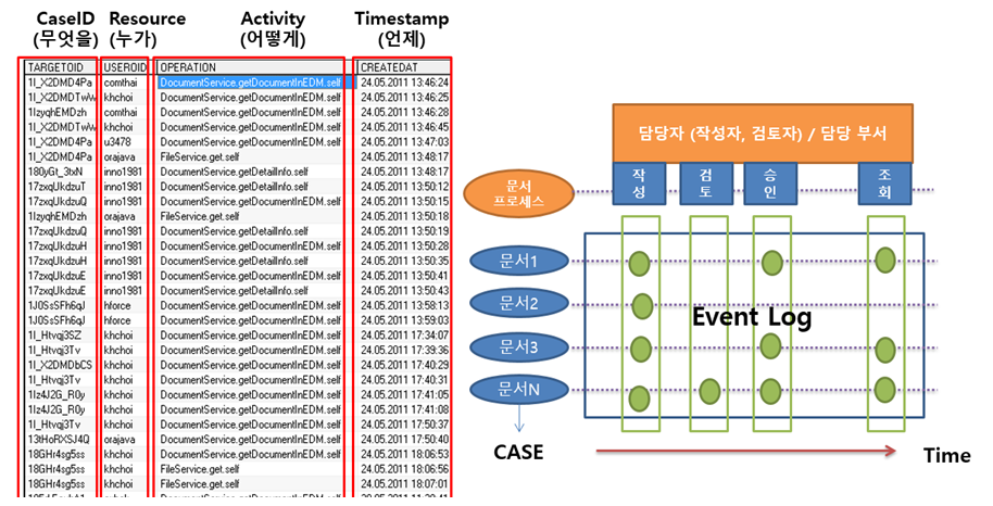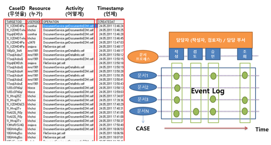 이벤트 로그를 기반으로 비즈니스 프로세스를 분석할 수 있는 프로세스 관리 기술
