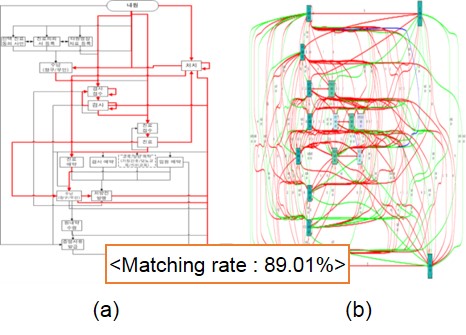 ▲ [그림 3] 표준 프로세스(a)와 도출된 프로세스(b)의 정합도