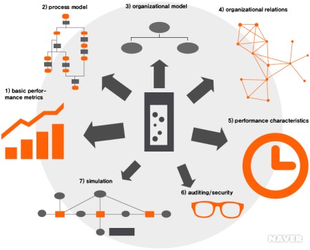 프로세스 마이닝은 BPM, ERP, CRM, SCM 등 다양한 기업의 업무 처리 시스템에서 기록되는 빅데이터의 이벤트 로그를 분석하여 프로세스 성과 측정, 프로세스 모델 도출, 조직 모델 도출, 시뮬레이션 분석 등의 연구를 수행할 수 있다.
