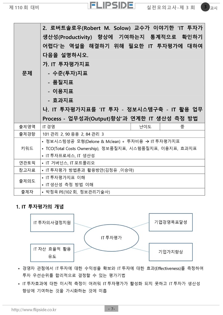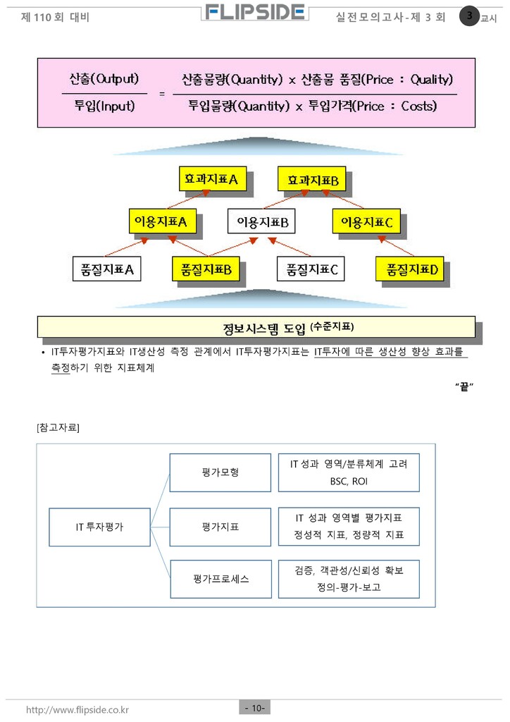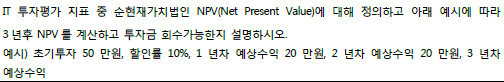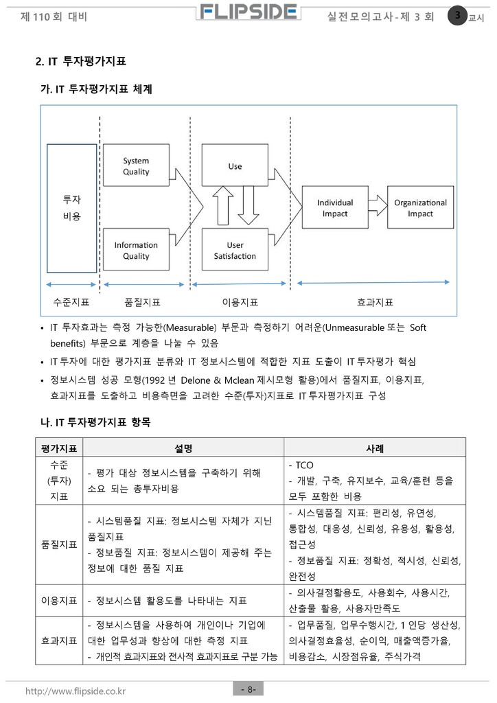 9) ROI = IT 총성과비용 / IT 총투자비용