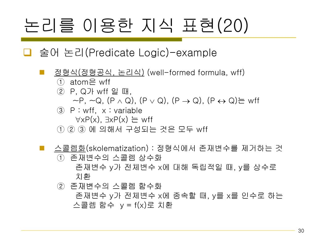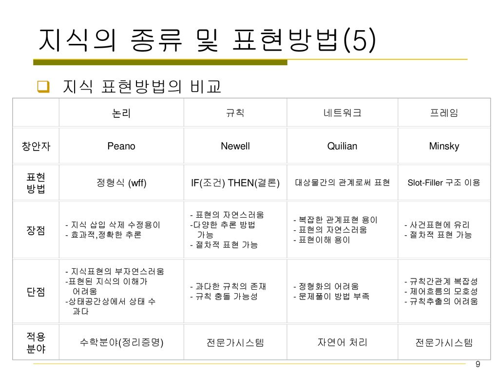 (지식 표현: 문제해결을 위한 지식을 컴퓨터에서 실행 가능한 형태로 나타내는 것)