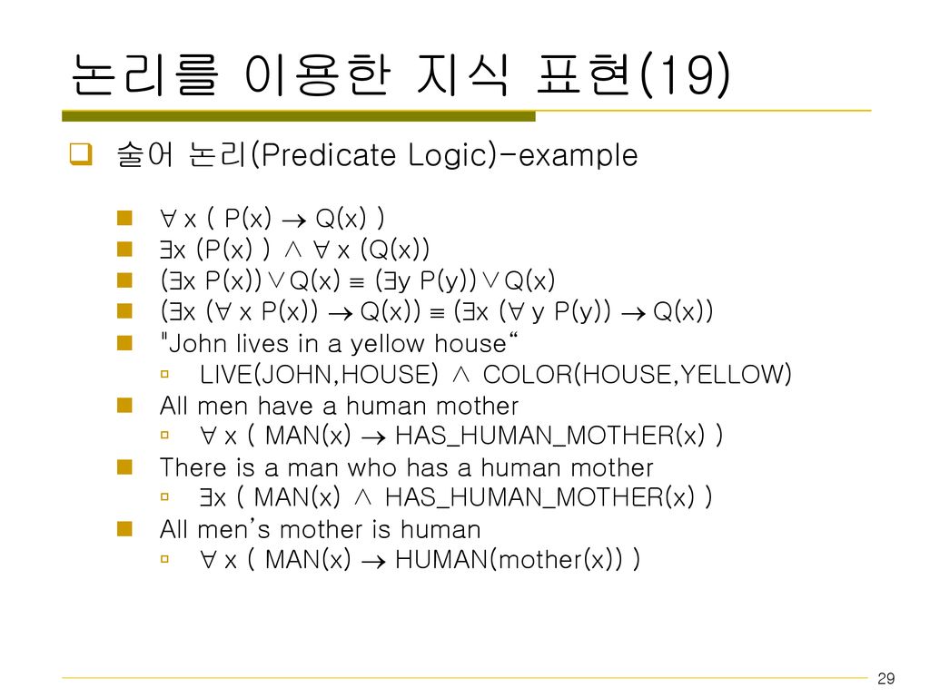 2) 이차 논리 (고차논리, high-order predicate logic))