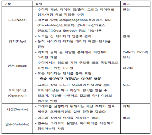 1.Node: 수학적 계산, 데이터 입/출력 등 작업 수행 (역전파 등 기술사용)