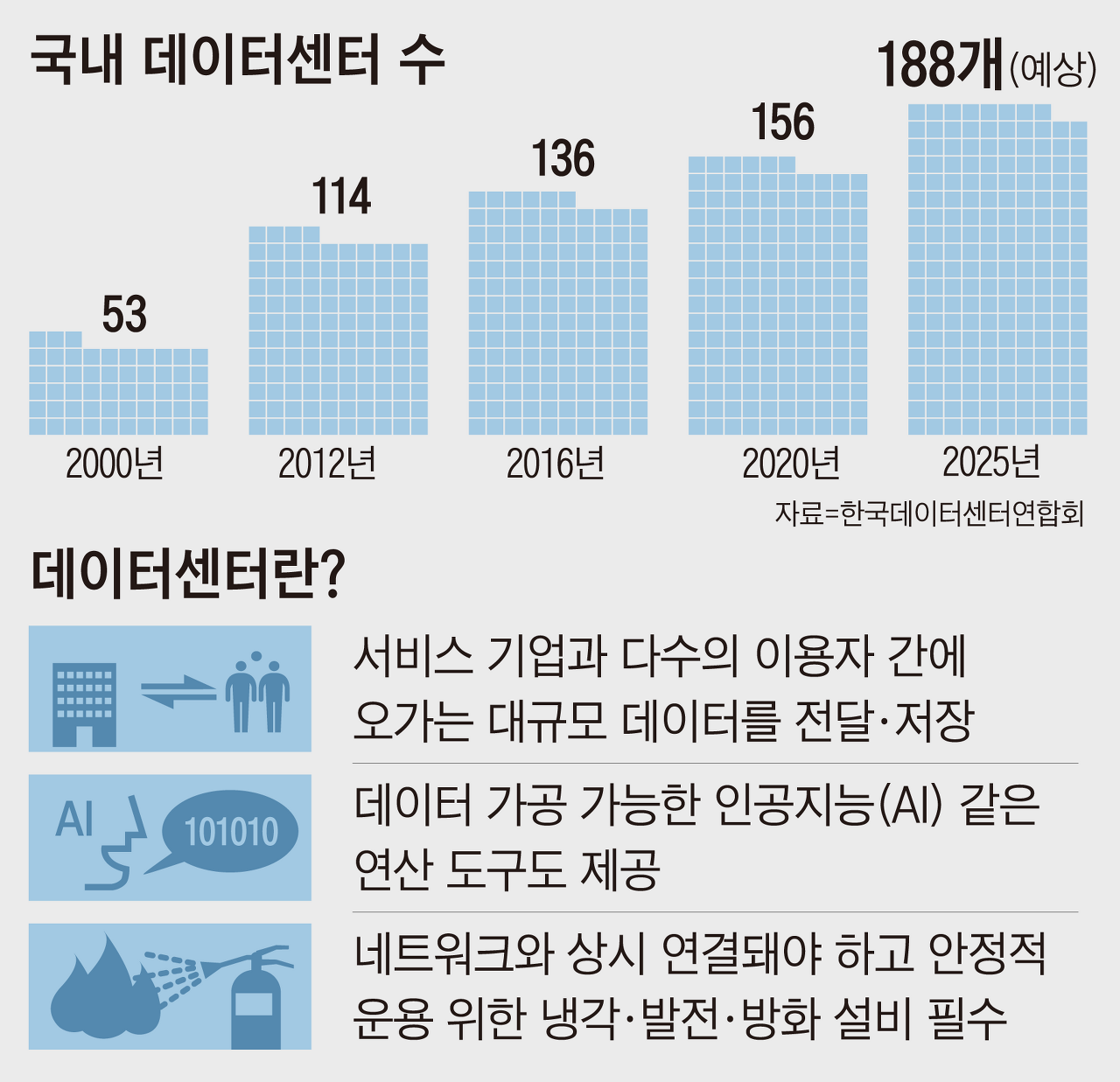 테러 우려에 위치도 공개 안한다...서버 호텔 데이터센터의 모든 것 카카오 먹통 대란 핵심 보안시설 국내 데이터센터 156곳 구글, 年2회 재해 대비훈련 4차산업 성장동력 폭발적 증가하는데