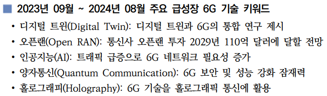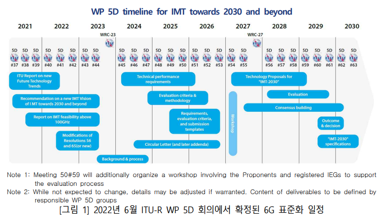 본격적인 6G 연구(Release 20)는 21개월 간 수행하기로 하였고, 6G 기술(Release 21) 표준화는 구현 규격 완료일정을 ‘29.3월 이후로 추진하기로 합의하고, 그 외의 상세 일정은 ’26.6월 이전까지 확정할 예정이다.