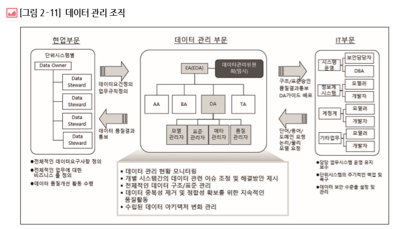 [개념] 데이터 관리 조직에서 의결한 원칙과 지침에 의해 관리되며 현업부분과 IT 부문 담당자에 의해서 실무에 적용