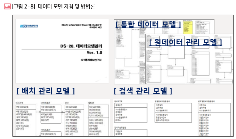 [개념] 데이터 모델 관리는 표준적인 프로세스에 의한 데이터 모델의 통합관리, 표준화된 모델링 방법론 제공, 신 데이터 표준적용, 데이터 구조 정보 활용 하에 기준과 원칙을 수립하고 절차화