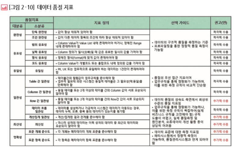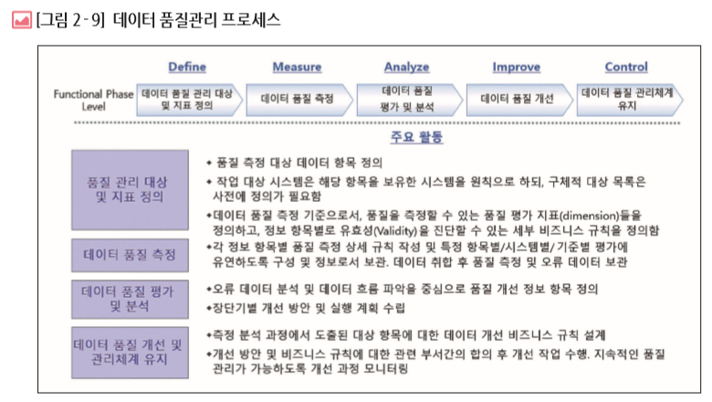 [개념] 데이터 품질 관리 프레임워크를 수립하고, 일회성 데이터 오류 수정이 아닌 지속적인 품질 측정, 개선 활동이 될 수 있도록 데이터 품질 관리 업무 체계 및 평가 체계를 수립