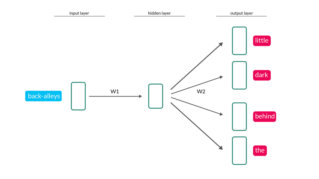 input layer의 weight에 해당하는 Matrix가 학습이 완료되면 embeddings(vector dictionary) 완성