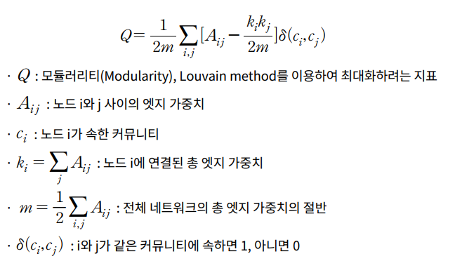 3)군집분석: 네트워크 구성 node간 결합력 바탕 군집구조파악