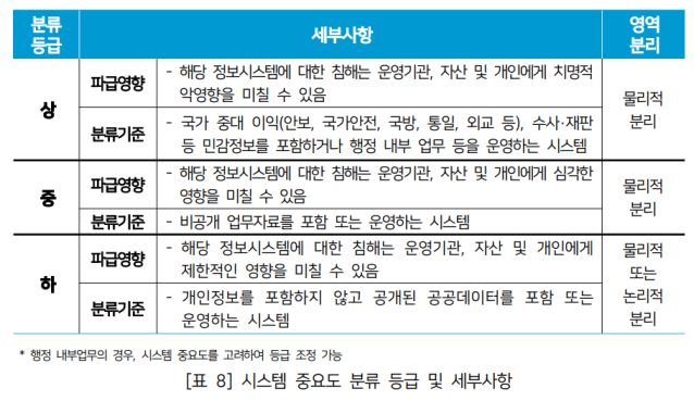 상등급은 민감정보를 포함하거나 행정 내부업무 운영 시스템으로 분류할 계획이다.