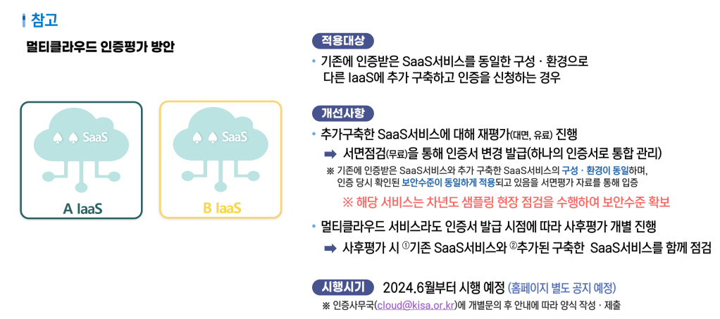○ 멀티클라우드 신청을 통해 인증 범위 및 인증서를 변경한 SaaS 서비스는 차년도 (가칭)샘플링 현장 점검 수행 대상이 됨