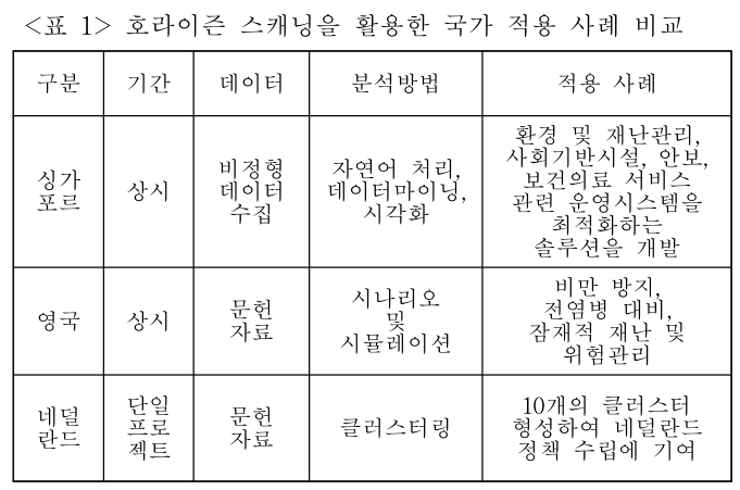 호라이즌 스캐닝을 활용한 국가 정책 사례 고찰. 이은지, 이혜진, 임선영, 박영호. 2019년 추계학술발표대회 논문집 제26권 제2호. 2019.