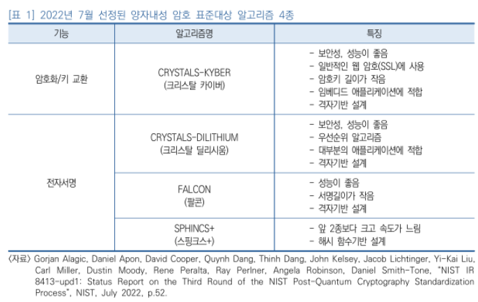 (개념) 양자컴퓨팅 환경에서 안전하게 암호기술을 이용할수 있도록 기존과 다른 새로운 수학적 난제에 기반한 암호