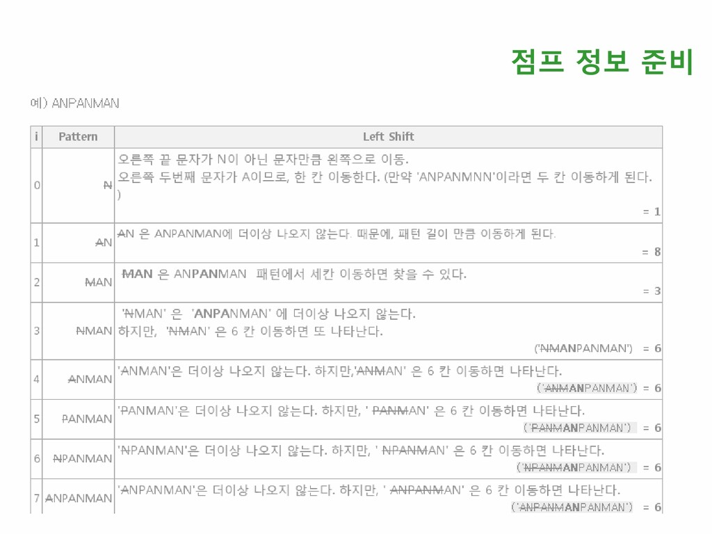 -. 제시되는 정형적 문자열(Text)내에서 특정 문자열(Pattern)을 빠르고 저비용으로 검색하기 위해 사용되는 절차나