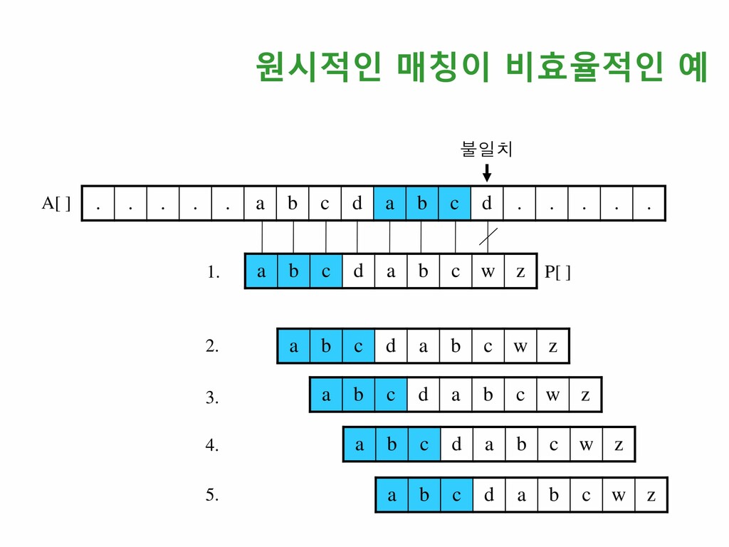 KMP(Knuth-Morris-Pratt) -. 평균 수행 속도: O(T+P)
