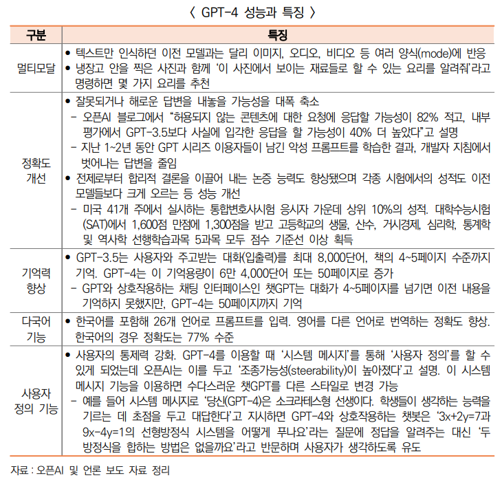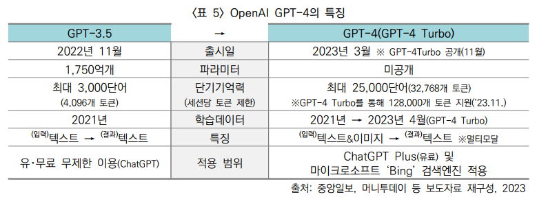 (개념) 오픈AI는 챗GPT(GPT-3.5) 출시 불과 4개월 만에 후속 버전인 GPT-4를 공개