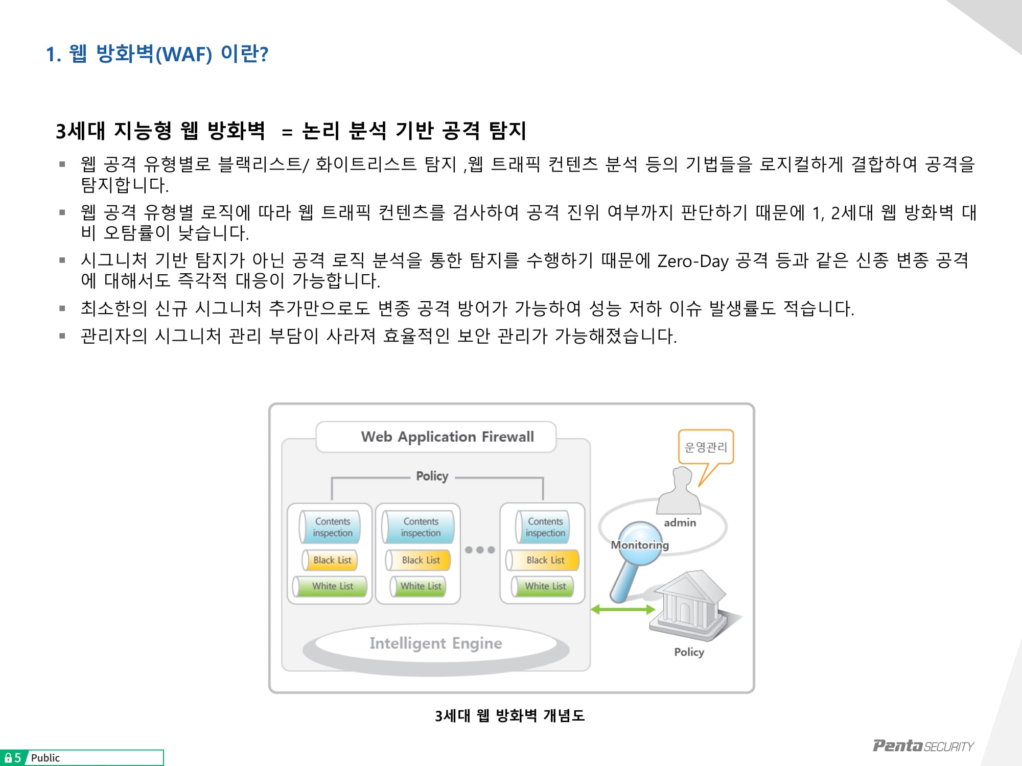 - Content Protection (웹 변조 방지, 코드 노출 차단, 신용카드 정보 유출 차단)