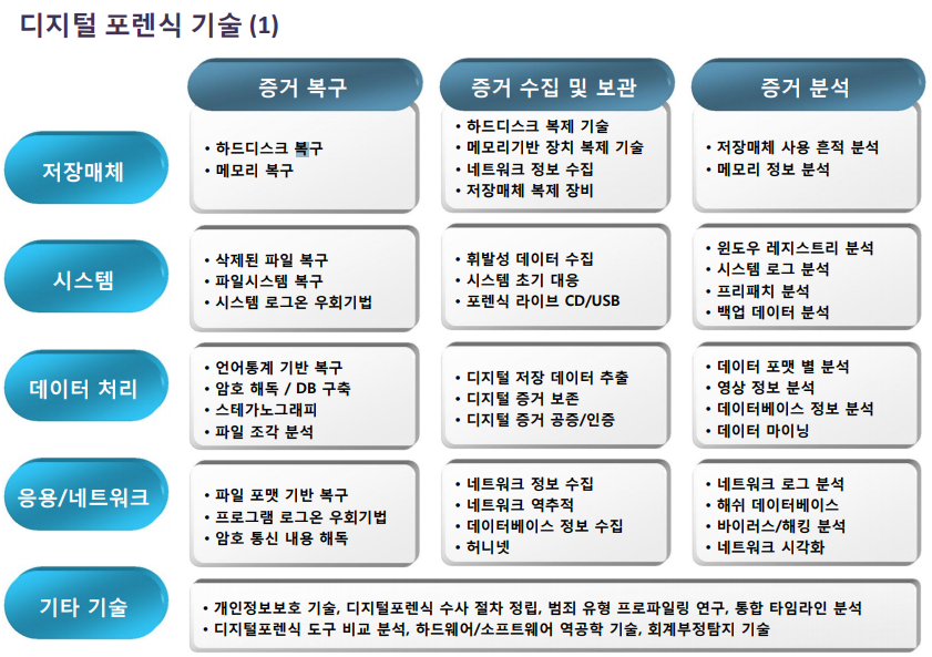 디지털 포렌식이란, 디지털자료를 수집, 분석, 보고하여 법적 효력을 갖도록 하는 기술