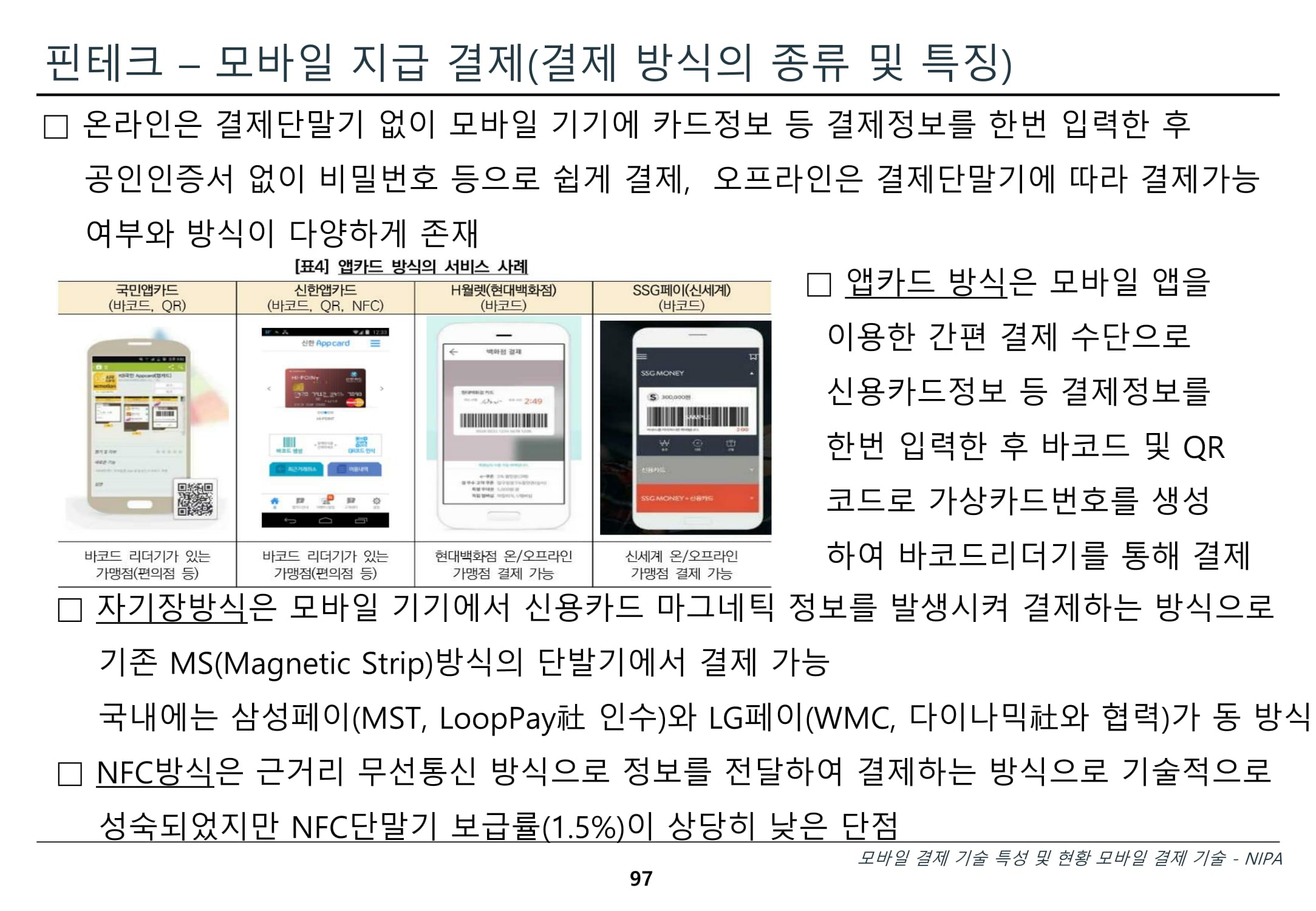 - 모바일, SNS, 빅데이터 등 새로운 IT기술 등을 활용한 기존 금융 기법과 차별화된 금융 서비스 및 산업