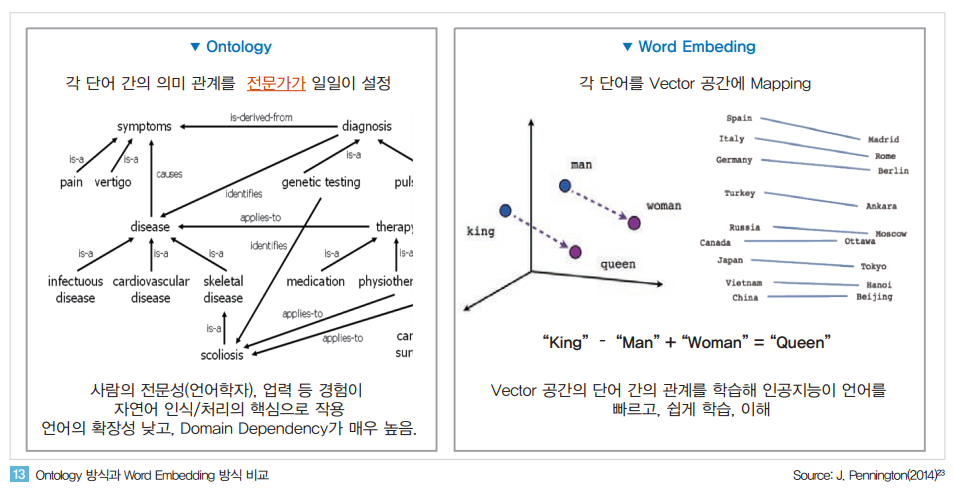 - One-hot representation : 단어 수 만큼의 크기를 갖는 벡터에 각 단어를 구별하는 하나의 1로 표현. 단어 간의 의미 관계를 표현할 수 없음