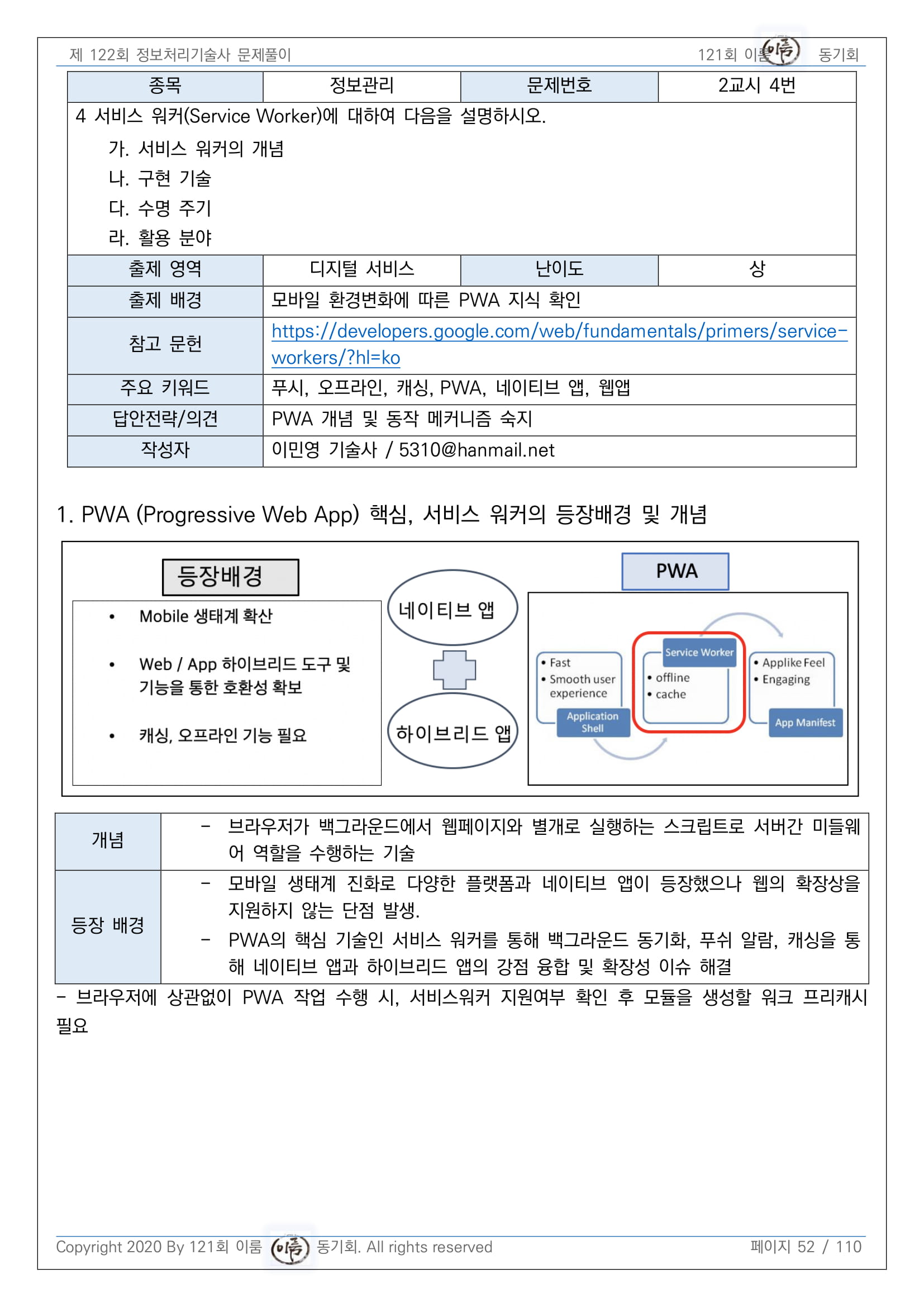 웹서비스 - 프로그레시브 웹 앱 Progressive Web App (PWA) - 서비스 워커 (Service Worker)