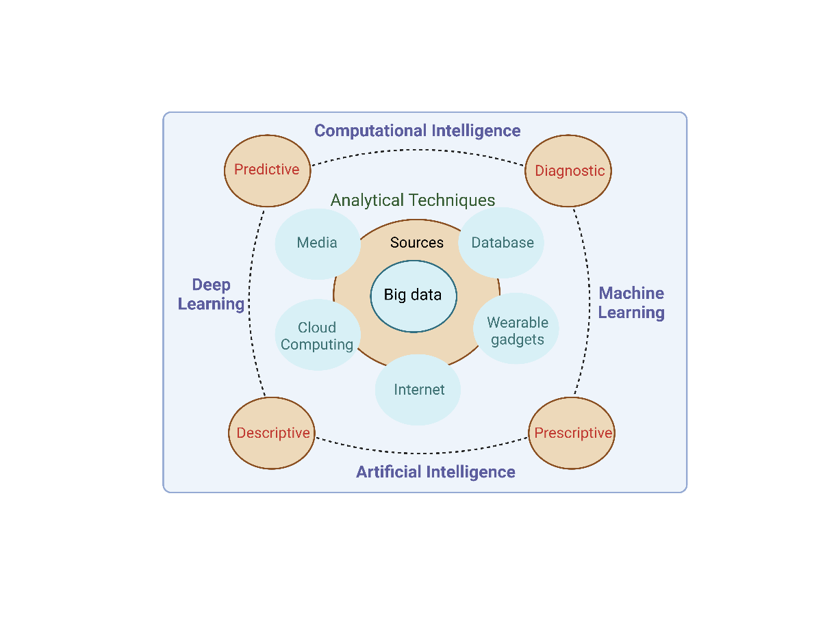 - 이러한 데이터 수집 및 분석에 해당하는 대표적인 모델로서 Descriptive, Diagnostic, Predictive, Prescriptive의 모델이 있으며 기존의 데이터를 활용하여 정확한 결과를 제공하고, 질병 병인론을 이해하며 이러한 질병 원인의 패턴을 분석하고 미래 위험을 예측하고 이를 토대로 질병 발생 제어를 위한 제반 사항을 설정하게 됨