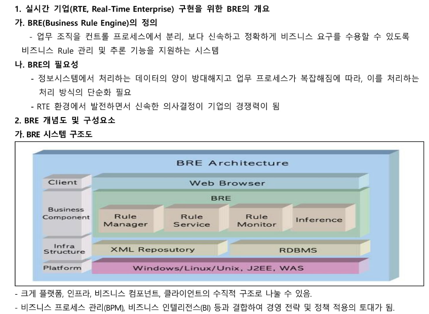 ㅇ 기업 업무 프로세스 변경을 자동화하기 위해 BRE와 BPM, BAM을 조합